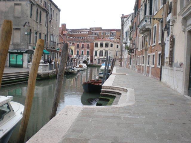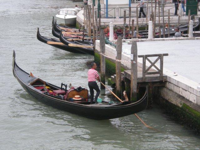 Nakonec jsme našli malé přemostění, kde byly schody nízké a poměrně daleko od sebe a tak nebyl problém překonat za pomoci doprovodu tuto překážku. Absolvovali jsme takový menší okruh v okolí kanálu, viděli jsme gondoly, koupili si suvenýr a částečně uspokojili naši cestovatelskou náladu, ale na náměstí jsme se nedostali. Napadlo nás také použít loď, jenže když jsem viděl ty kluzké schody porostlé řasou, tak jsem to vzdal, nemluvě o ceně. Gondola 30 min/ 100 Euro a to musíte smlouvat.