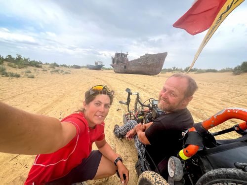 Plánování cesty trvalo asi rok a samotná ostrá příprava začala v momentě, kdy mi domů dorazil handbike. Ten jsem pořizoval právě kvůli této cestě, to bylo asi 4 měsíce před startem. Vyrazili jsme 30. 3. 2025 z Centra Paraple. Evropu, to znamená Rakousko, Slovensko, Maďarsko, Srbsko a Bulharsko jsme projeli poměrně rychle. Za tři týdny jsme byli u Černého moře. Tady jsme si dali asi týdenní pauzu a čekali na trajekt, kterým jsme se přeplavili do Gruzie. Tu jsme projeli celou od západu na východ s nadějí, že se nám podaří překročit pozemní hranice do Ázerbájdžánu. Přestože bylo avizováno, že k otevření hranic by mohlo dojít, nestalo se tak, a my museli hranice přeletět. Z Ázerbájdžánu jsme opět přepluli trajektem, tentokrát přes moře Kaspické do Kazachstánu, kde jsme překonali jihozápadní kazašskou step. Na hranici do Uzbekistánu nás čekalo překvapení v podobě dočasně uzavřeného pozemního přechodu, kdy se přes hranice dalo dostat jedině vlakem. Dál cesta pokračovala už jen na kole přes celý Uzbekistán, Tádžikistán až do Kyrgyzstánu k jezeru Issyk – kul. Z hlavního města Biškek jsme pak letěli zpět domů. Cesta nám trvala 110 dnů. Na tachometru na konci výpravy bliklo ujetých 6 tis. kilometrů. Se všemi přejezdy pomocí trajektů, letadlem i vlakem jsme tak překonali 8,5 tis. kilometrů.